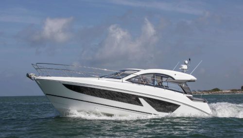 The Gran Turismo 41 is the latest model to join BENETEAU’s express cruiser line, and she presents herself as the ultimate powerplay for those looking to dominate the water in style. Adventurous and spacious, she combines sport and relaxation to master a fresh new model where limits simply do not exist. Whether it’s her boast-worthy speed, racy head-turning lines, or her many inviting social spaces, this feature-rich cruiser offers endless opportunities for entertainment and enjoyment on the water.
