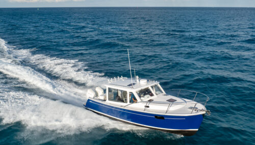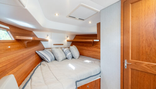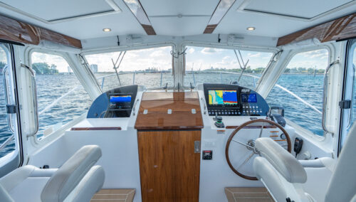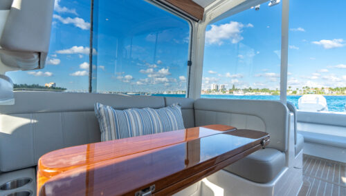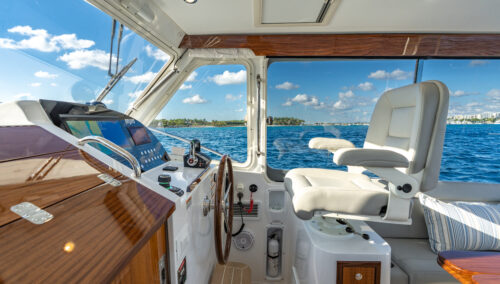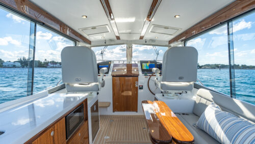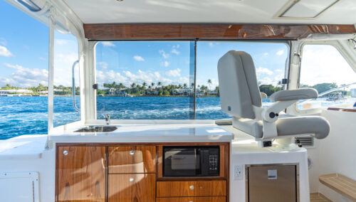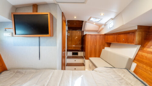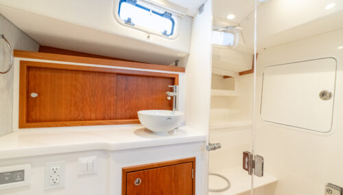 Below deck, the 38RS delivers the comforts that define a true luxury yacht: a full head with shower, ample storage, and fine details like high-gloss teak accents and satin-finished cherry shelves. Whether you’re fishing offshore, hosting at the dock, or slipping away for a day on the water, the versatile MJM 38RS stands apart as a luxury fishing boat built to perform without compromise.