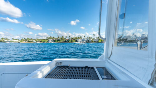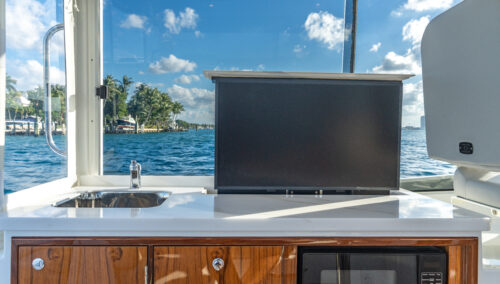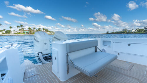 The MJM 38RS exhibits MJM’s hallmark efficiency, stability, and smooth ride. Crafted in the Carolinas, the 38X’s Downeast style design and craftsmanship is top-of-the-line. The versatile hull design ensures the boat runs clean, dry, and confidently in all conditions, whether you’re chasing fish offshore or cruising home with family and friends. The cockpit is purpose-built for weekend anglers, featuring rod holders, dual live wells, tackle storage, and a removable bait prep station, all seamlessly integrated into a layout that still feels spacious and welcoming. After the action, the same cockpit transforms into a luxury lounge with an optional grill, refrigerator, icemaker, and sink; a perfect setting for entertaining.