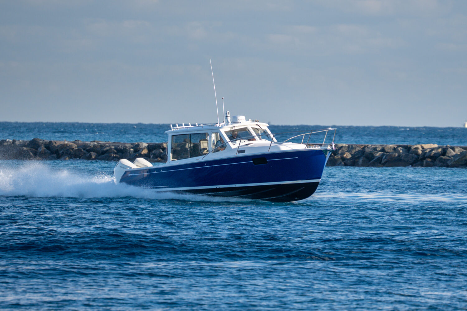 Below deck, the 38RS delivers the comforts that define a true luxury yacht: a full head with shower, ample storage, and fine details like high-gloss teak accents and satin-finished cherry shelves. Whether you’re fishing offshore, hosting at the dock, or slipping away for a day on the water, the versatile MJM 38RS stands apart as a luxury fishing boat built to perform without compromise.