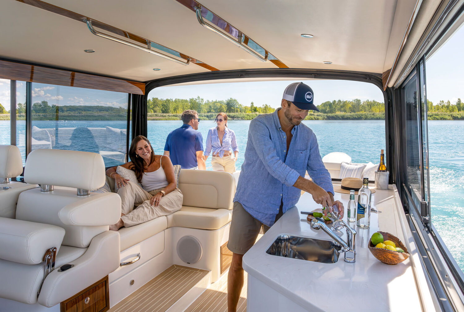 The MJM 47X stands out as a remarkable open-bow day cruiser. Owners rave about its unparalleled handling and smooth ride, dubbing it the “absolute best driving yacht” with effortless fingertip steering. Featuring four distinct social areas and a galley-up layout with the protection of the MJM indoor/outdoor pilothouse, the MJM 47X offers a versatile and efficient design. Below deck, you’ll find a spacious v-berth and a yacht-sized head with a glass-enclosed shower. Whether you’re hosting a gathering or embarking on day voyage, this all-weather/all-condition performance yacht ensures comfort and adventure for you and your loved ones.