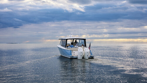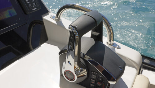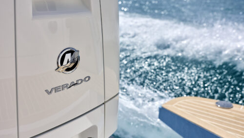 - Twin Mercury 600 hp Verado Outboards or Volvo D6 440 HP w/DPI Inboards