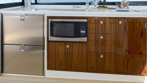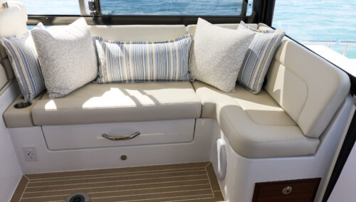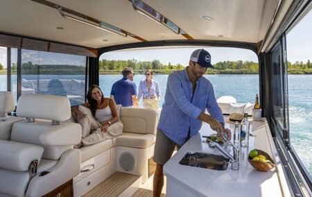 The MJM 47X stands out as a remarkable open-bow day cruiser. Owners rave about its unparalleled handling and smooth ride, dubbing it the “absolute best driving yacht” with effortless fingertip steering. Featuring four distinct social areas and a galley-up layout with the protection of the MJM indoor/outdoor pilothouse, the MJM 47X offers a versatile and efficient design. Below deck, you’ll find a spacious v-berth and a yacht-sized head with a glass-enclosed shower. Whether you’re hosting a gathering or embarking on day voyage, this all-weather/all-condition performance yacht ensures comfort and adventure for you and your loved ones.