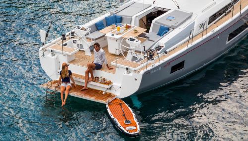 Whether you are with the family, friends, or just a couple, the important thing is that everyone feels at home on board. The shroud-free deck, the number of handrails, and easy access to the swim platform makes movement fluid from stern to bow.