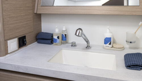 You have configuration flexibility: the standard 3-cabin, 2-head layout offers generous volume and tremendous liveaboard appeal, while a 5-cabin, 3-head version is available for charter or larger crews.