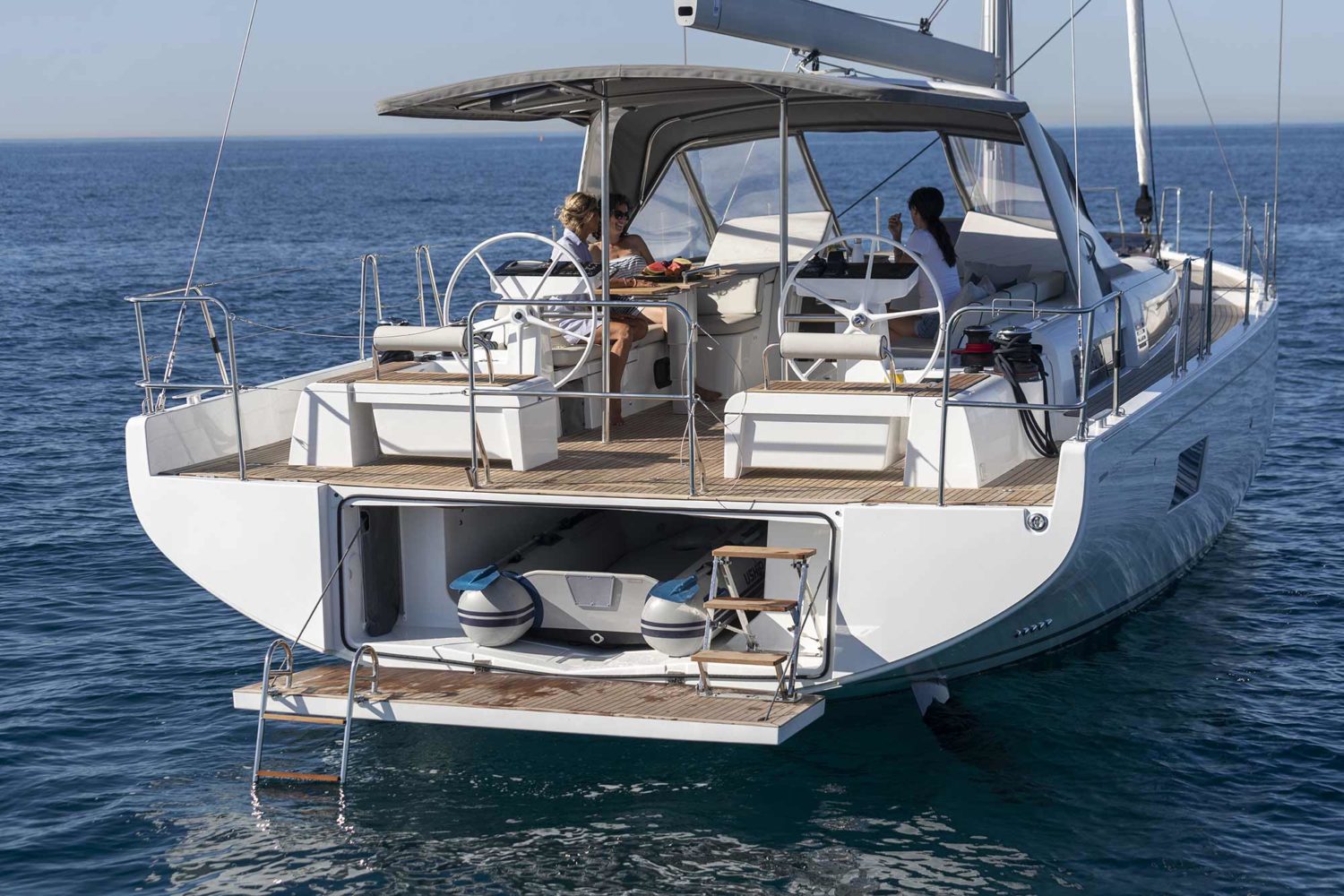 The BENETEAU Oceanis Yacht 54 has been designed with the latest and greatest sailing technology to ensure your cruising experience is as easy and enjoyable as possible. A flush cockpit allows easy movement between the helm stations and the companionway. A spacious swim platform allows easy access to the sea and space to store an eight-foot inflatable tender.