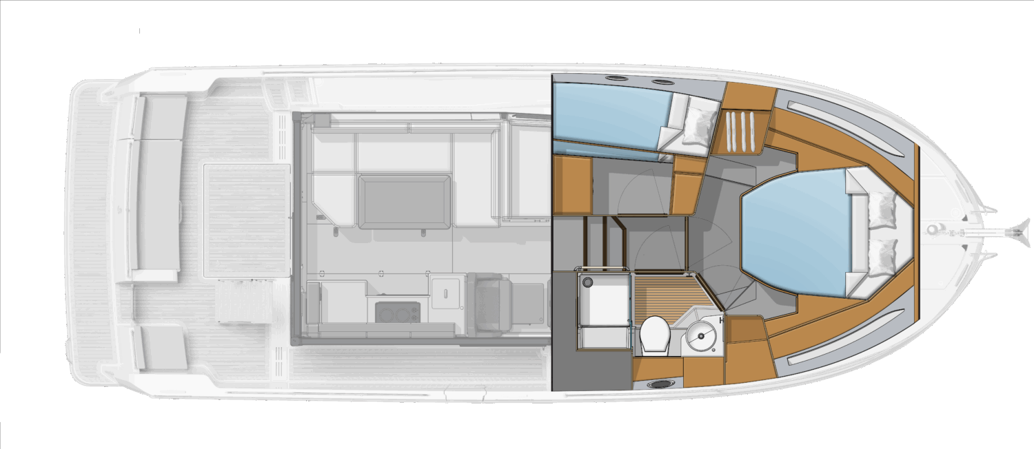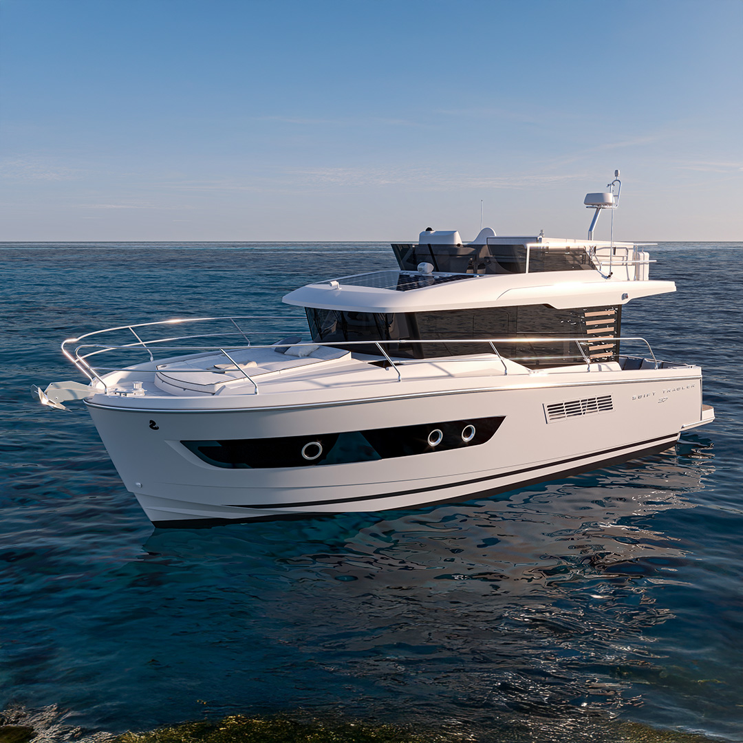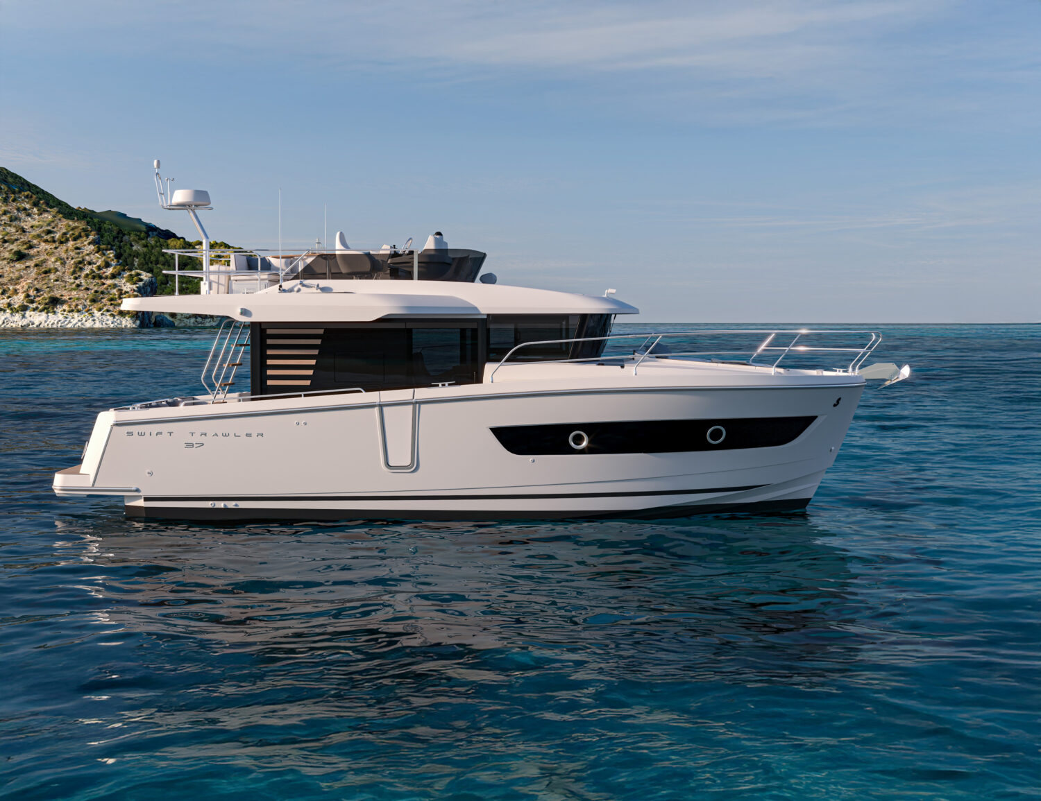 The all-new BENETEAU Swift Trawler 37 Fly is designed for those who want to cruise farther, live comfortably, and enjoy every horizon along the way. Blending timeless trawler character with modern elegance, this versatile cruiser offers generous interior volume, a bright and welcoming salon, and accommodations ideal for extended voyages or weekend escapes. The flybridge becomes a social hub at anchor or underway, while the innovative cockpit adapts seamlessly from entertaining to relaxation. Thoughtful details like Corian countertops, panoramic windows, and smart storage solutions elevate life on board, while efficient performance and seaworthy handling deliver confidence whether crossing open waters or exploring hidden coves. With its balance of freedom, comfort, and style, the Swift Trawler 37 Fly is more than a boat—it’s a way to turn every journey into an unforgettable experience.