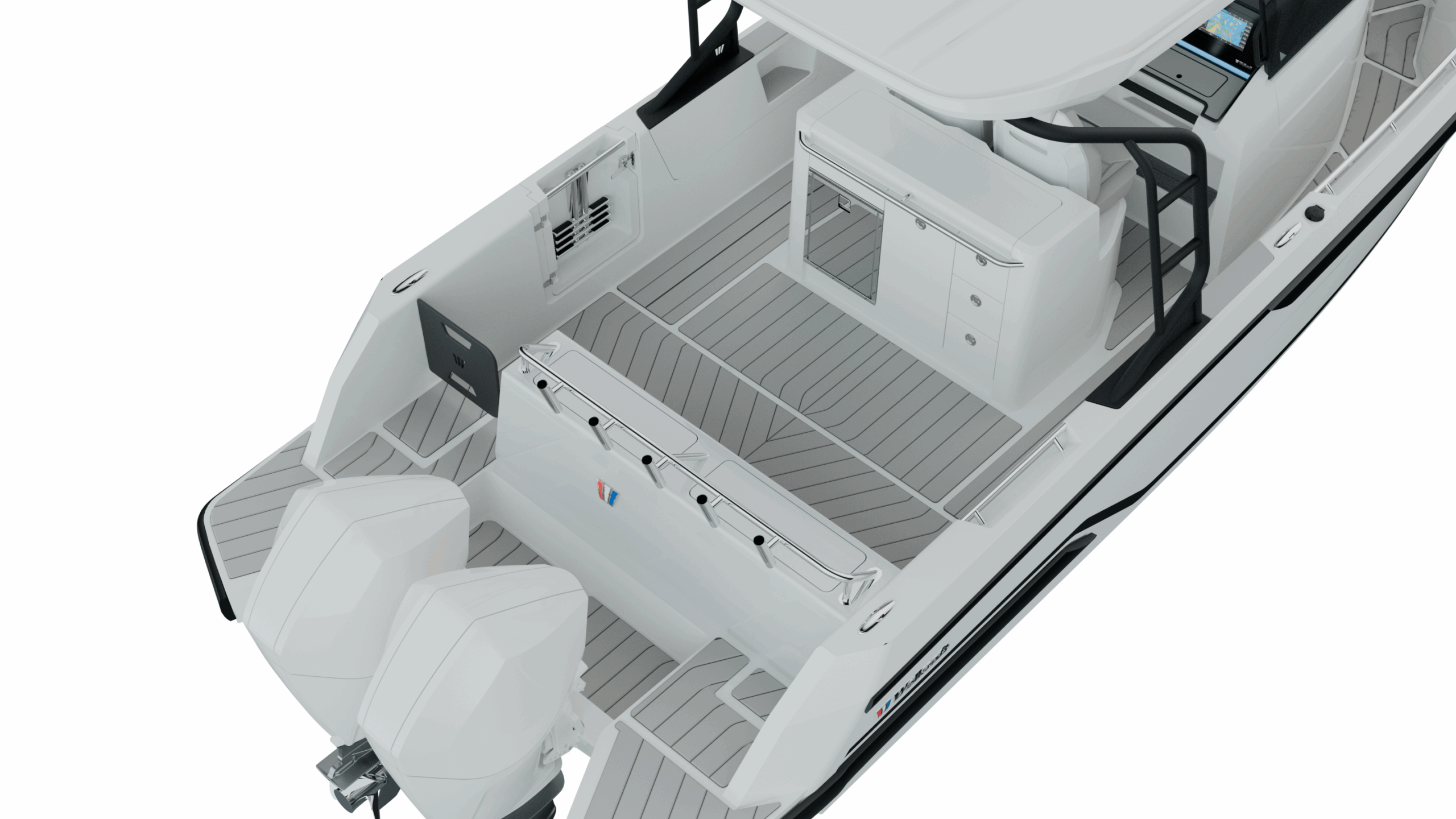 The open-cockpit layout is designed for maximum enjoyment and adaptability, with multiple aft configurations including spacious Lounge seating for up to 13 guests or a relaxing sunpad setup with hidden storage for leisurely days at anchor. High bulwarks, a closed transom, oversized handrails, and a full walk-around deck make movement aboard safe and intuitive in any condition, while the bold silhouette and refined lines balance modern style with functional performance.