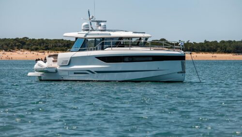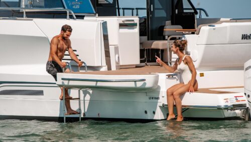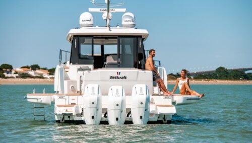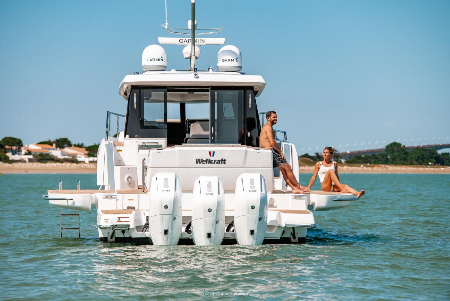 The Wellcraft 44 Explorer is designed to provide the ultimate in comfort and convenience. The high freeboard and starboard side door make life onboard easy and safe. The bow features two large social areas with a generous triple sun lounger and seating designed for entertaining, while the aft provides two comfortable lateral folding side terraces for a spacious open-air gathering area. Luxurious spacious interior crafted for luxurious comfort, the spacious living area and interior are sure to impress. High-quality materials used throughout the interior provide a comfortable onboard experience. The protected wheelhouse features pilot and copilot benches for three and a fully equipped galley at the deck level seamlessly connects the aft cockpit living space. Below deck are two spacious cabins with private bathrooms each having separate showers providing accommodations for up to five people. The Wellcraft 44 Explorer has an abundance of storage space to ensure everything is kept neat and organized, making it the ultimate boat for unforgettable adventures.