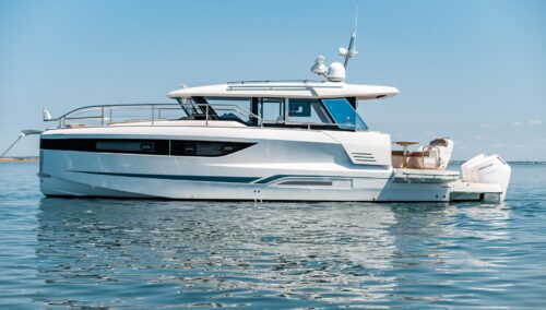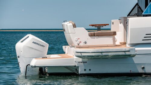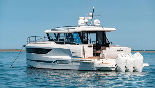 Designed by the famed Garroni Studio in Italy and the highly recognized American naval architect Michael Peters, this strong and sophisticated model boasts an impressive length of 44’. Powered with triple outboard engines totaling over 1,000 hp and equipped with a full beam pilot station, highly responsive controls, and exceptional navigation systems, the Wellcraft 44 Explorer responds to the toughest demands and meets every challenge – to go anywhere, to do anything.