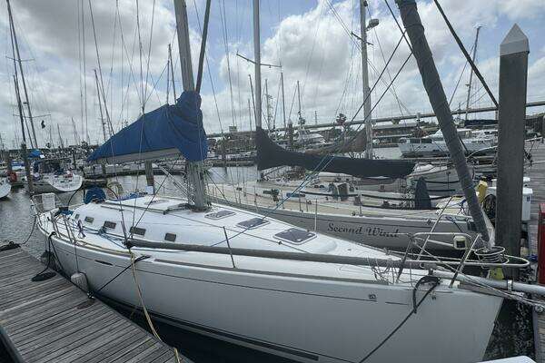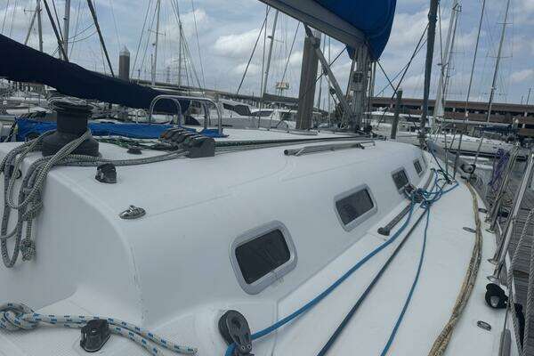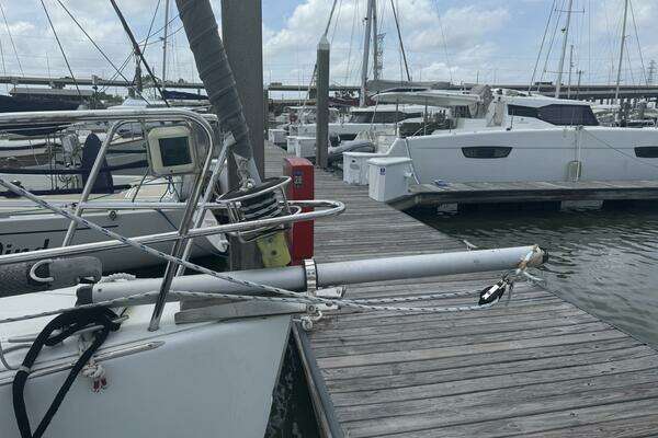 - She was in her slip in Port Aransas for HS Harvey and sustained only cosmetic damage to the starboard side and bow: gel coat/minor fbg repairs, starboard toerail and lifelines were replaced, additional work (non-storm-related) was done when the rig was taken down to be inspected.