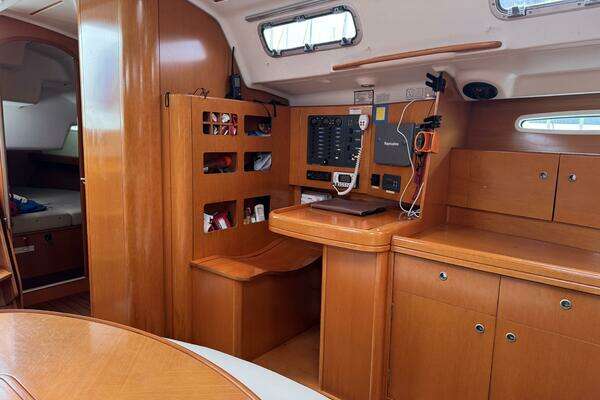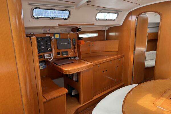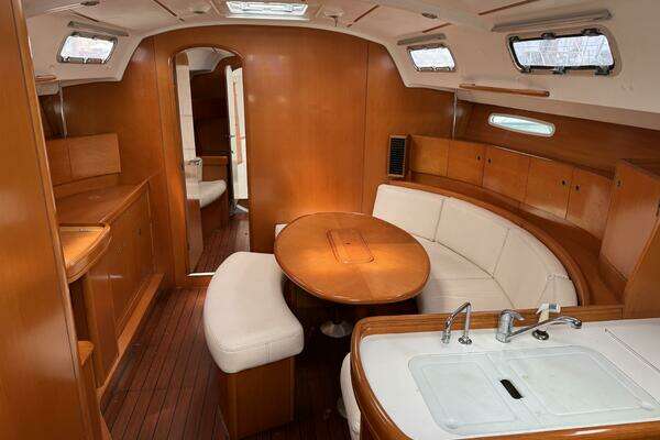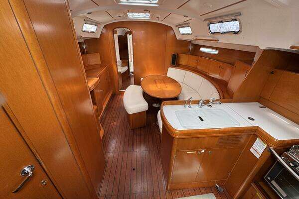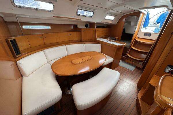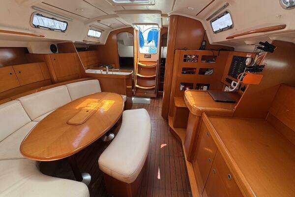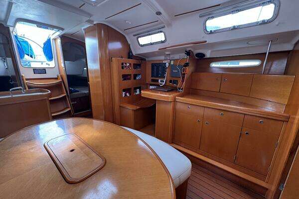 Athena is an extremely comfortable cruising boat equipped with amenities such as two Cruisair reverse-cycle air conditioning units. While the First 44.7 looks and performs beautifully on the racecourse, below decks it shines far above others in its class. You’ll feel confident entertaining friends in the spacious salon and comfy cabins. The exquisite Beneteau joinery, a worldwide hallmark, is evident in a pear-toned finish. Fixed hull ports, opening ports, and deck hatches provide ample natural light and ventilation. In the elegant salon, you’ll find an innovative, adjustable, curved settee adjacent to the dinette, which can remarkably move out of your way. The commodious and private owner’s cabin, with its separate head and shower, is