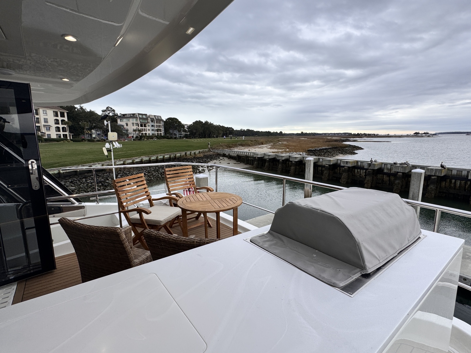 - Electric BBQ and 65L refrigerator on flybridge