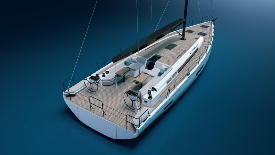 Every aspect of the First 60’s exterior speaks to purposeful engineering and performance-oriented design. Her sleek, sculpted profile, by Lorenzo Argento and Biscontini Yacht Design, balances clean beauty with refined sail systems that enable intuitive, precise interaction with the boat. Advanced features like the captive mainsheet winch, walk-around Winch Island and Park Avenue boom simplify sail handling while centralizing control — making both short-handed sailing and spirited crewed passages equally rewarding.