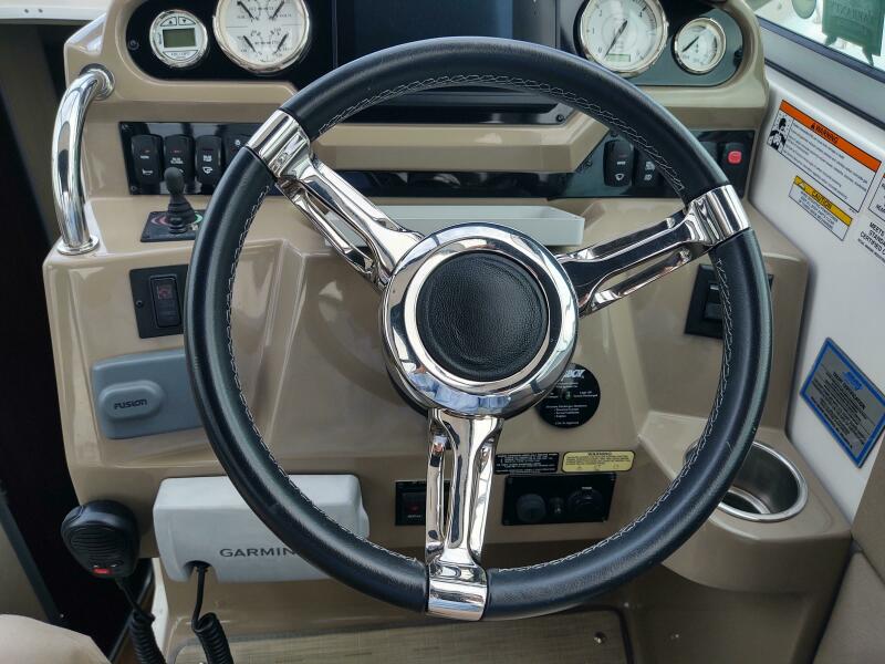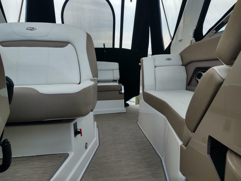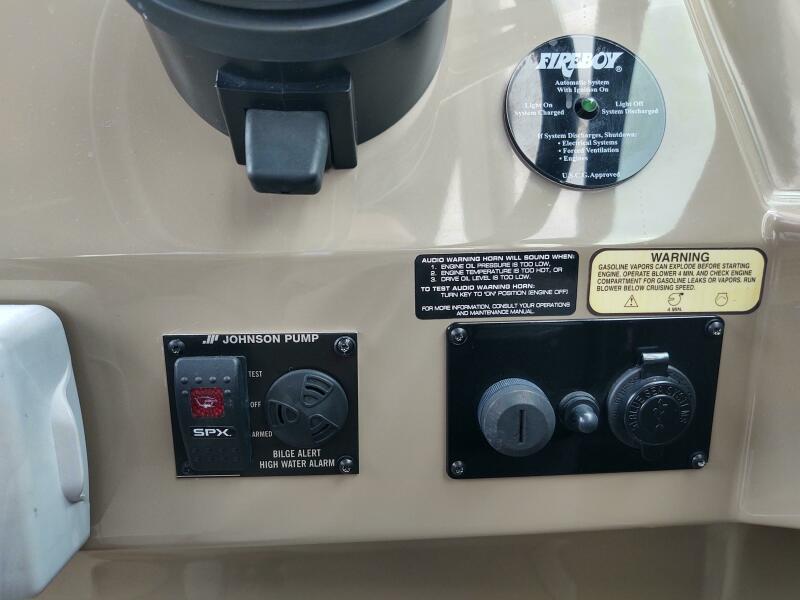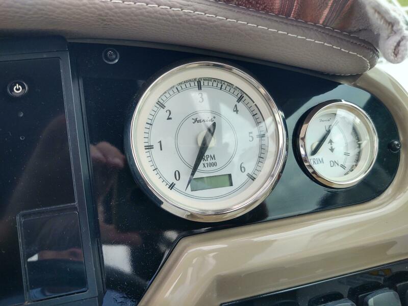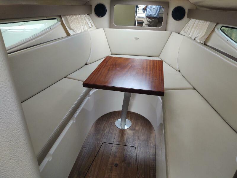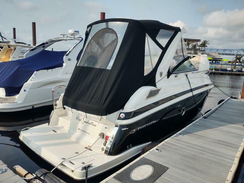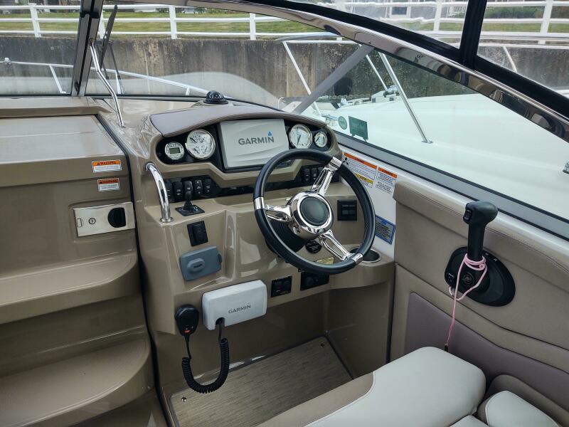 Real Seaductive is an excellent example of this Regal-style mid-size cruiser. Well equipped with Garmin electronics, Bow thruster, Reverse Cycle Air conditioning/heat system, full cockpit enclosure, Power Tower Arch that folds down with a push of a button for trailering or overland transport, and a beautiful colored hull. The Mercruiser MAG 350 with Bravo 3 stern drive has just 155 engine hours and shows of very light use.